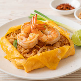 ผัดไทยกุ้งสด หนึ่งในอาหารไทยที่โด่งดังไกลไปทั่วโลก ผัดไทยที่อร่อยจะมีรสชาติที่กลมกล่อม คือหวานเปลี้ยวเค็มเผ็ดเล็กน้อยเป็นเอกลักษณ์สีออกน้ำตาลมีกลิ่นหอม